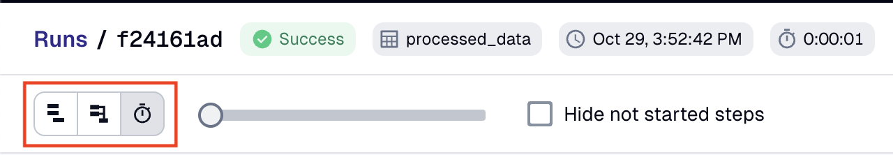 To change how the run is displayed, you can use the view buttons in the top left corner of the page: